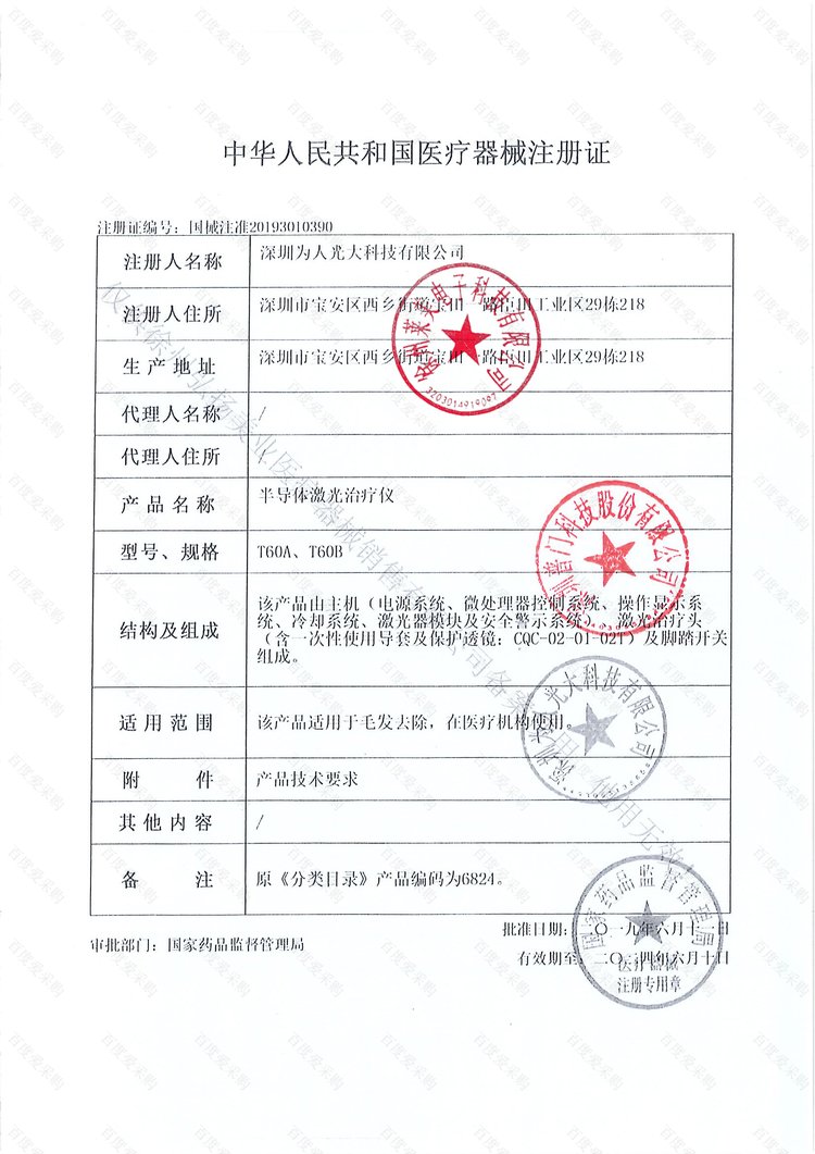 半导体激光治疗仪毛发去除,在医疗机构使用三证齐全