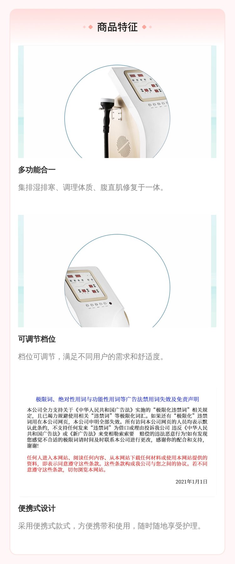 产品用途 | 体型管理、皮肤管理、产后修护 | ||