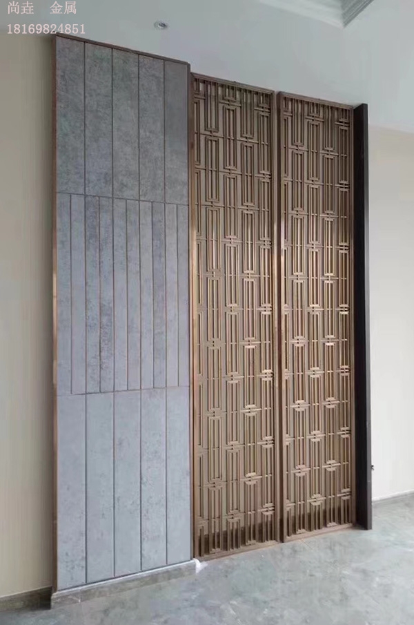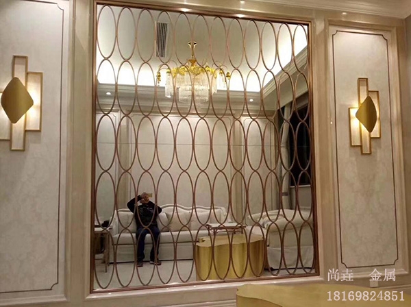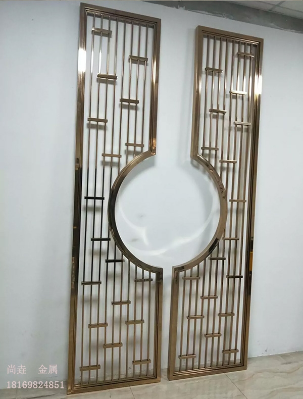 不锈钢焊接仿古铜装饰花格,不锈钢镂空花格,不锈钢隔断屏风布局,色彩和表面装饰等方面保持酒店不锈钢隔断后的简单精致,坚固耐用灵活运用多元化空间和非常时尚的酒店隔断后的室内风格。不锈钢焊接仿古铜装饰花格让您在有限的空间里巧妙的合理运用,酒店不锈钢屏风不仅在制作质量上而且在视觉上都给人一种豪华美观的享受,且耐磨耐腐蚀性强。符合现在装饰的任何场合。