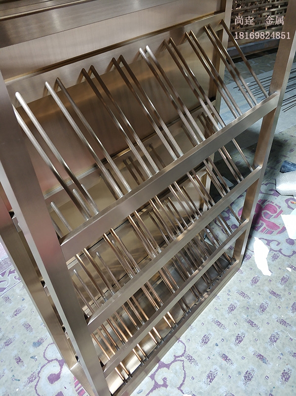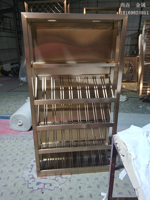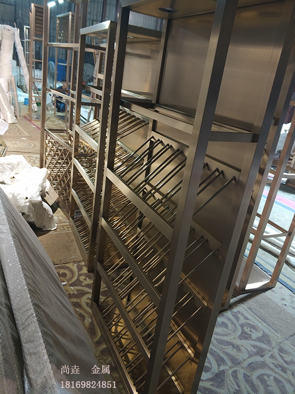 佛山尚垚金属制品有限公司。专业提供不锈钢酒架、酒柜,恒温不锈钢酒柜定制加工,来样设计加工,来图设计加工,可以有:玫瑰金、钛金、黑金、玫瑰红、古铜、香槟金等各种颜色,也可以来色板定制,颜色相似度90%以上。欢饮咨询.