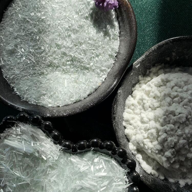 铭域生产的玻璃纤维粉的原料为无碱玻璃纤维原丝,非开刀丝、玻璃粉,没有参杂任何其他矿物粉体。