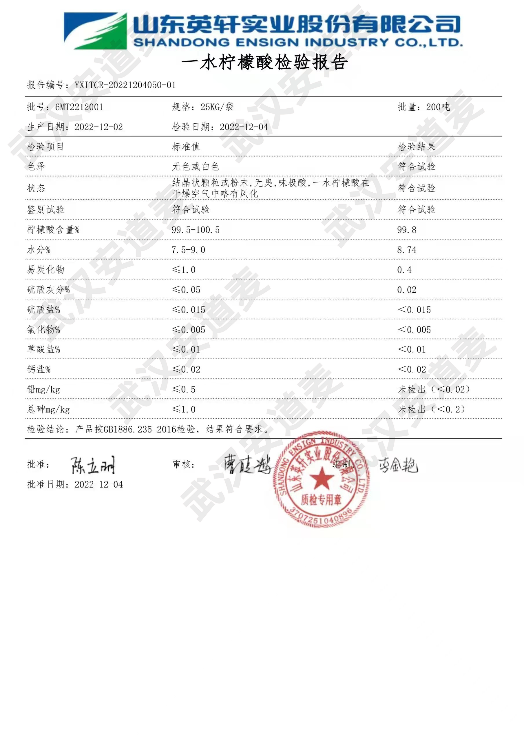 用途范围 | 主要用于食品、饮料行业作为酸味剂、调味剂、保鲜剂等。一水柠檬酸还在化工行业、化妆品行业及洗涤行业中用作抗氧化剂、增塑剂、洗涤剂。 | ||