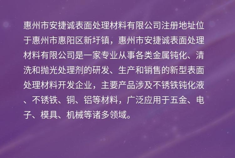 商铺名称:惠州市安捷诚表面处理材料有限公司