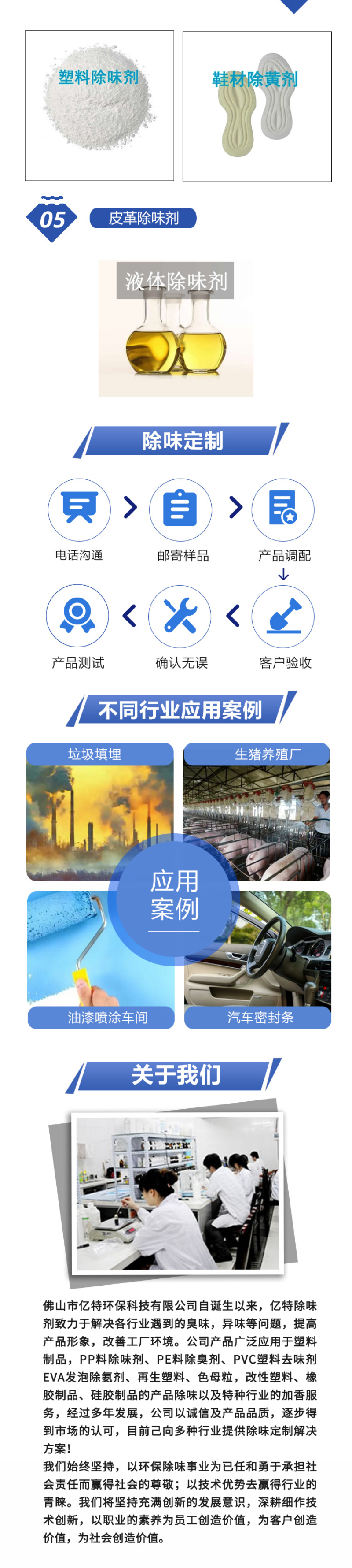 皮革除味剂短时间内消除臭味良好的抗菌性能PVC人造革去味剂