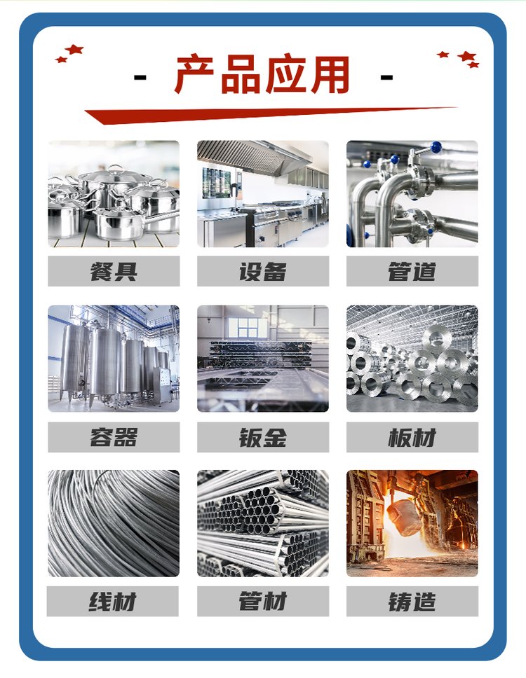 适用材质 | 不锈钢、铜材、铝材、电镀件 | ||