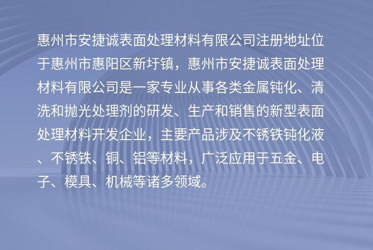 商铺名称:惠州市安捷诚表面处理材料有限公司
