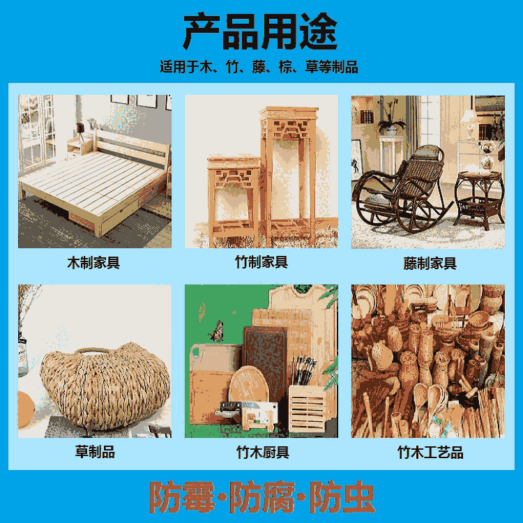 3. 木雕防霉剂,固含量比较高,原液不排除部分人士有皮肤接触*敏现象,建议使用时配带橡胶手套进行操作。