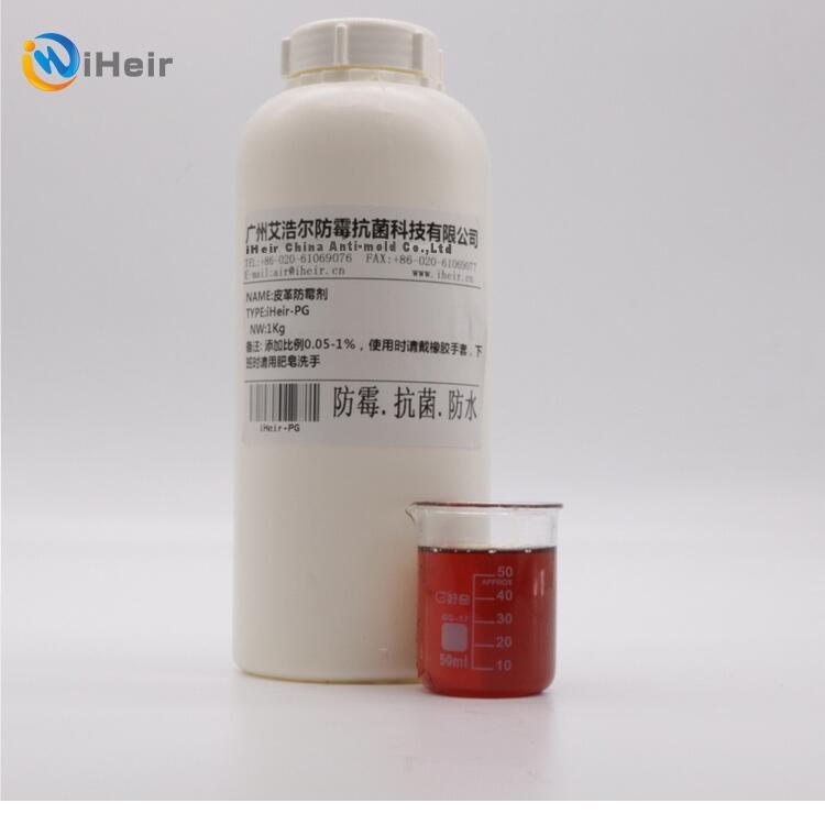 应用:由于潮湿条件和酸性PH,铬鞣革在湿蓝状态下存贮极易长霉,导致皮革变色。严重长霉还将引起霉变区域永久变色,进而影响皮革的涂饰等后加工操作,降低皮革的经济价值。在良好的卫生环境下,使用iHeir-PG处理皮革,将帮助阻止铬鞣革上霉菌的生长。在加脂及涂饰工艺添加iHeir-PG,则可有效地保护成品革免受霉菌的侵袭。