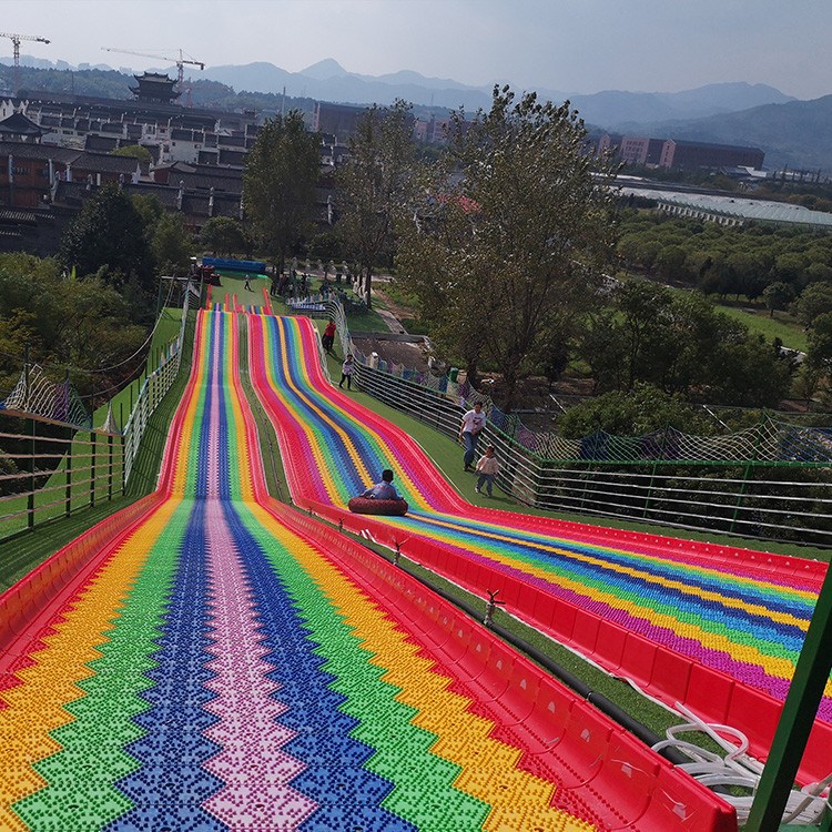 彩虹滑道在经营时,每条滑道只需一个工作人员在上方放圈,一个工作人员在下方收圈。非常方便,无需的技术要求。真正的让投资者做到省心省力