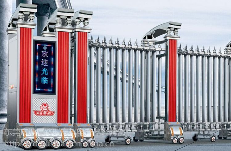 二、电动伸缩门根据材质分为不锈钢伸缩门和铝合金伸缩门。