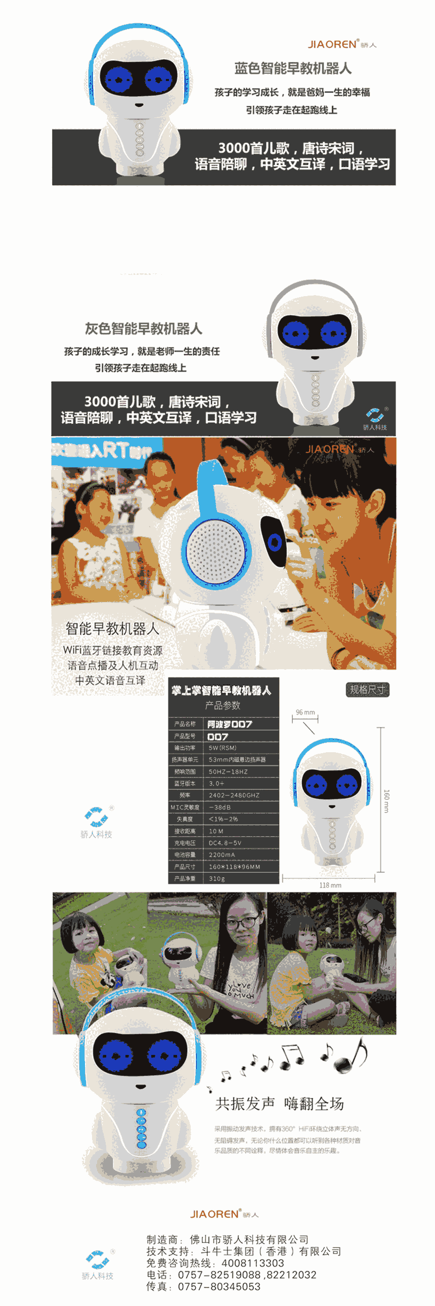 佛山市骄人科技有限公司致力于成为全球领先的家用智能早教机器人,打造一个陪伴孩子的机器人。