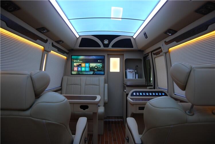 丰田考斯特在内饰的设计上是极其贴心的,车载冰箱的设计贴心备至,高档的办公桌设计方便我们在商务办公中的需要。而车顶的LED大灯设计更是可以满足我们照明的需要。丰田考斯特车内航空顶灯以及车内驾驶席的半桃木装饰,这些设计在效果的展示上提升了丰田考斯特改装商务车的档次。丰田考斯特汽车销售改装公司就选成都快宜捷,一站式服务。
