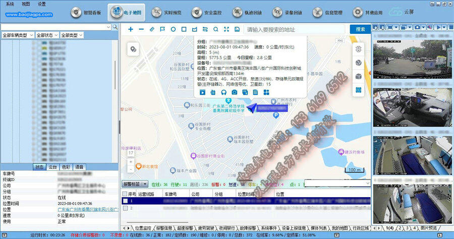 监控管理单位所有急救车的即时准确位置及急救车即时状态。监控信息包含急救车所在全国范围内准确位置、急救车行驶状态如速度、方向、经纬度及有无超速、越界报警信息等。
