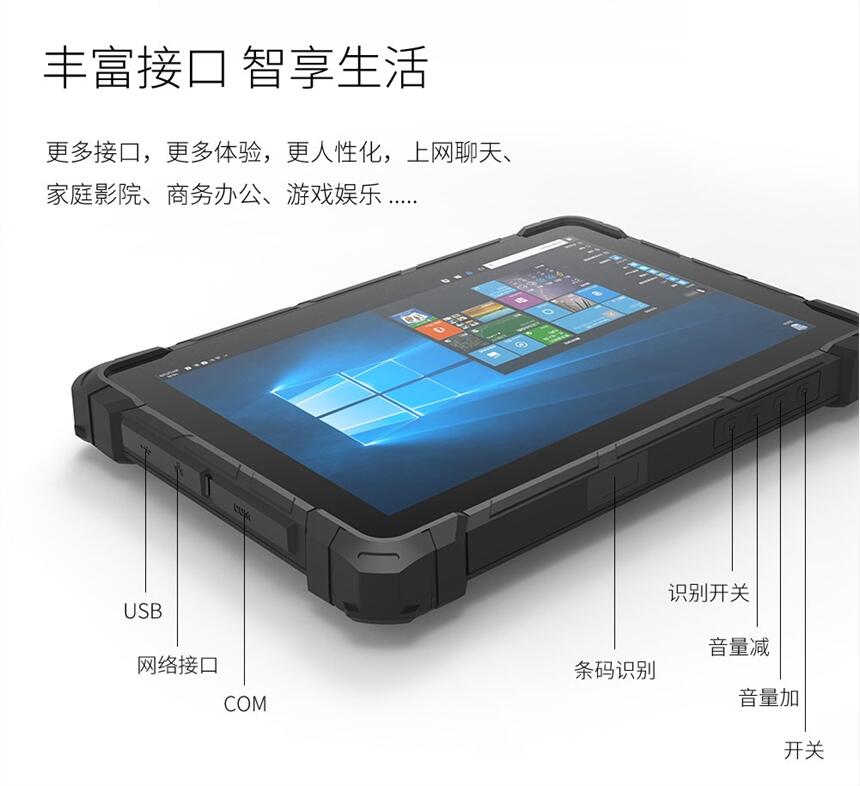 前海高乐的三防平板电脑z8350-F7是一款10.1英寸的多功能的军用级加固平板电脑,可在各种工业环境中提供坚固的保护和极高的弹性,可在各种重量级的机器和设备中使用。z8350-F7的设计延长了使用寿命,增强了可靠性,可承受1.2m高度跌落,浸泡在1米深水里,不会对机身造成伤害。它内置的12000mAH大容量电池,使其成为一款真正的户外探险、特殊作业的必备的电脑。凭借其各种各样的I/O端口和可选的集成条码阅读器,它成为物流和工厂自动化的通用移动HMI。