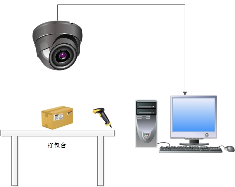 打包时,先扫一次快递单号,软件将记录该单号,并开始录像。将货物放入快递箱,并封箱,打包完成后,再次扫一次快递单号,系统将自动结束本次打包过程,并保存打包录像。