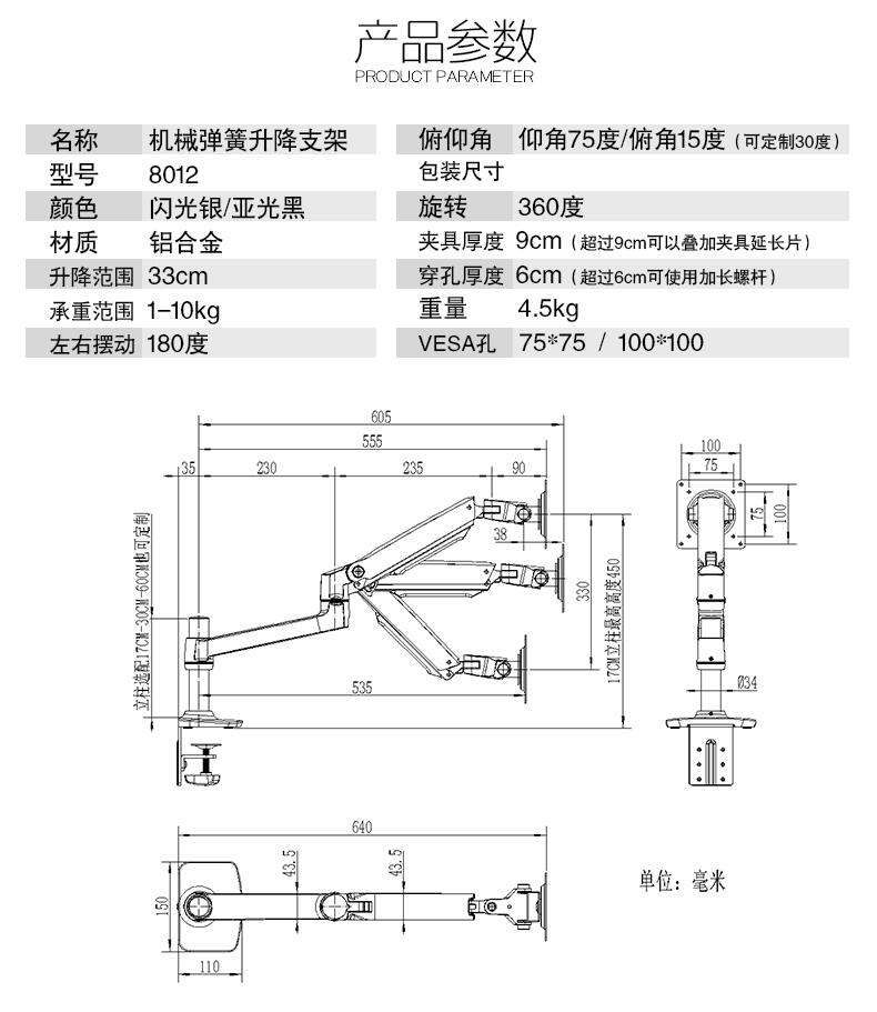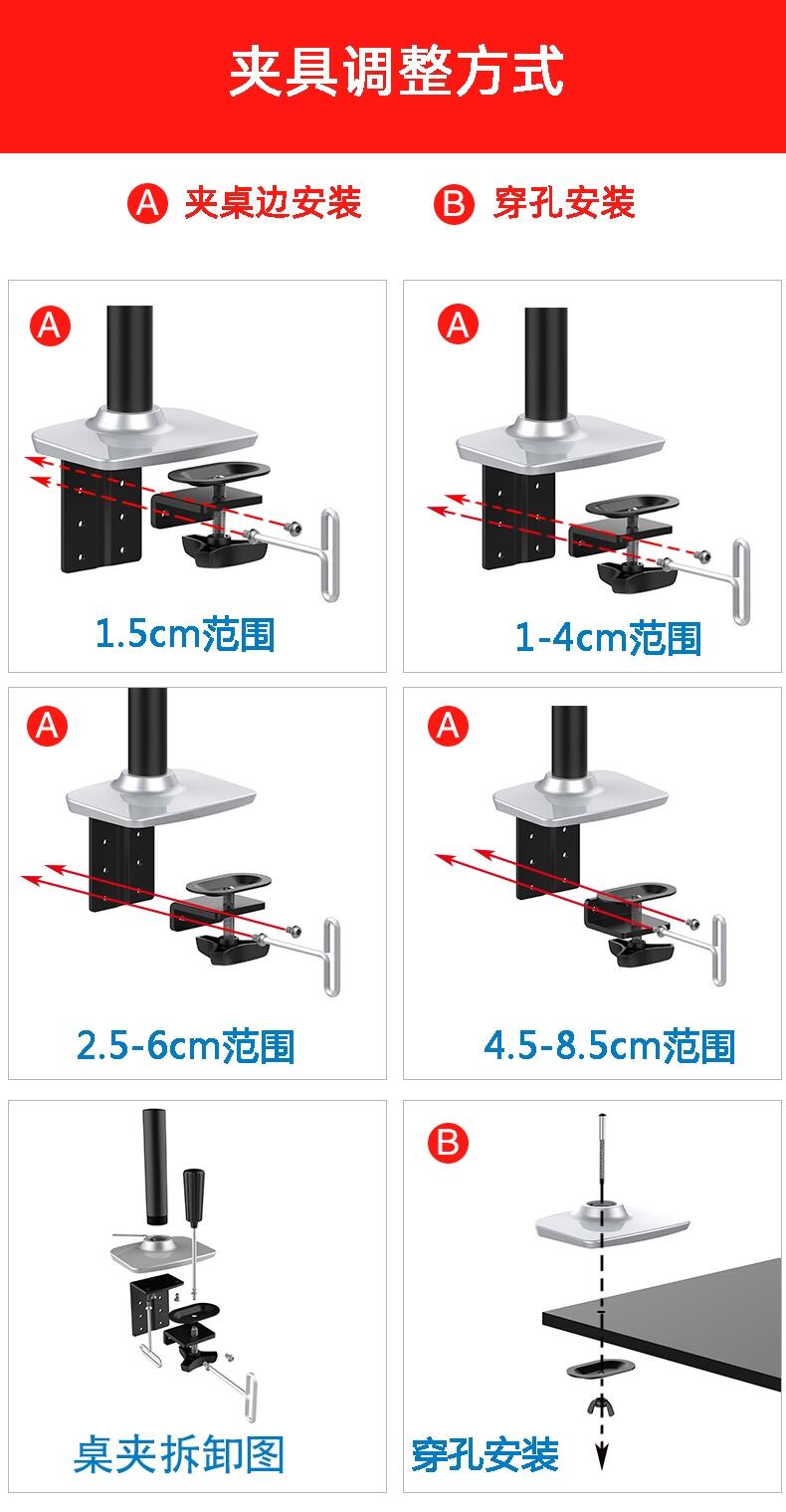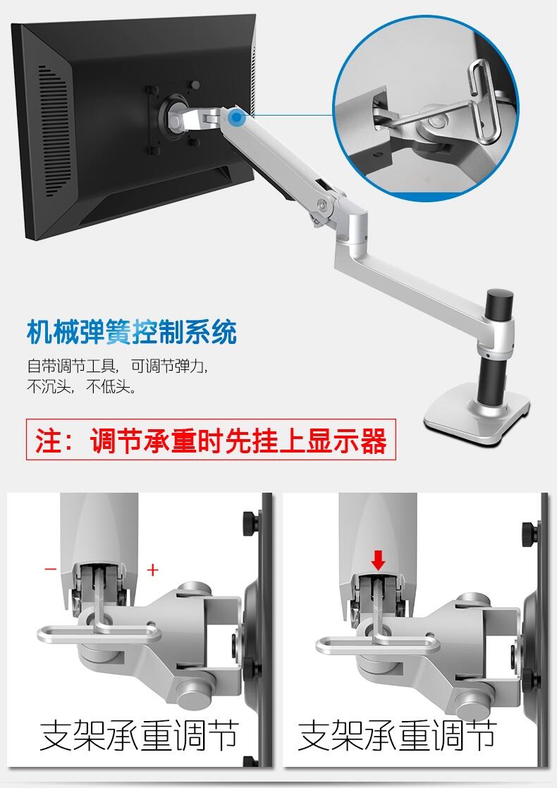 新视纪电脑显示器支架升级款机械弹簧挂架20万次升降寿命铝合金VESA架子