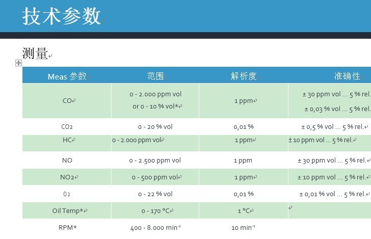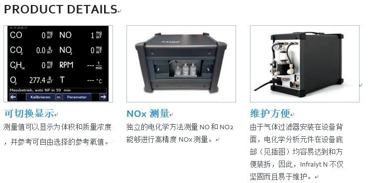 提示:以下模板中任意文字及图片均可执行修改、复制、删除的操作,添加更多的图片和文字描述有助于增加产品对买家的吸引Infralyt N用于快速,全面地分析汽油和柴油发动机排放尾气。随着自主开发出具有高精度的特殊NDIR工作台,可以在各自的范围内测量气体CO,CO2和HC。用于快速NO,NO2和O2测量的电化学分析元件允许对实际污染物水平进行实时测量。由于仪器内置冷凝水分离,您不需要额外的附件和准备工作。所有排放污染物气体组分测量值与发动机转速、油温在显示器同时显示。借助这些信息,就可以对柴油发动机尾气排放处理过程和污染进行清晰明确的评估。Infralyt N整台仪器设备尺寸小、重量轻、结构紧凑,适用于台架测试和移动测试使用场合。