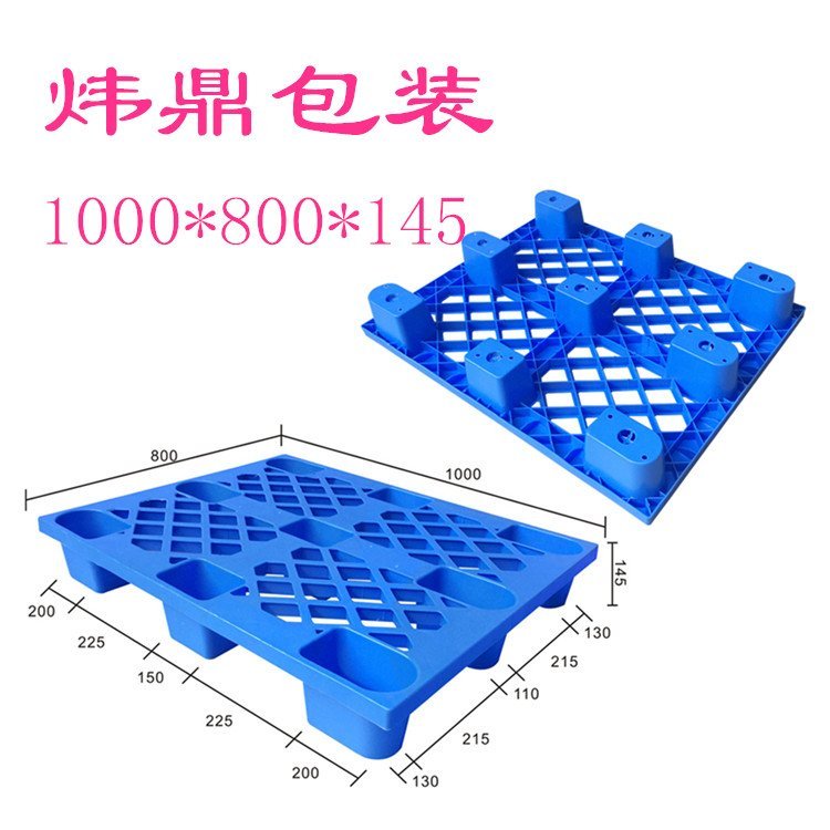托盘作为地铺板使用,即托盘装载货物以后不再移动,只是起到防潮防水的作用,可选择结构简单、成本较低的托盘,如简易的木托盘,但是应该注意托盘的静载量、用于运输、搬运、装卸的托盘,要选择强度高、动载大的托盘。这一类的托盘由于要反复使用,并且要配合叉车使用,因此对托盘的强度要求较高,这样就要求托盘的结构是“田”字行或者是“川”字行的。
