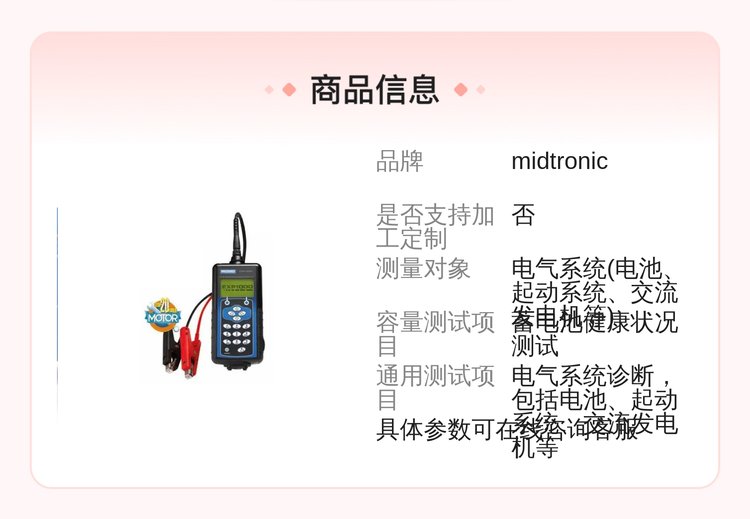 测量对象 | 电气系统(电池、起动系统、交流发电机等) | ||