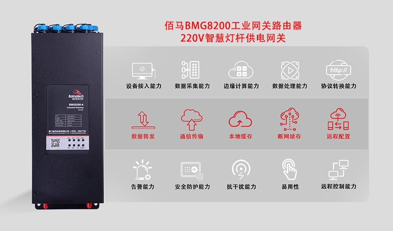 1、快速实现设备上云。佰马BMG8200智能接入网关设计有千兆网口、光口和RS232/RS485等功能接口,满足物联网设备的集中接入,支持系统方案根据场景进行功能拓展,助力产业升级。