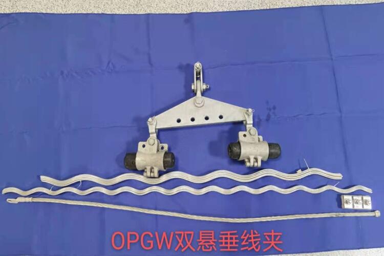 预绞式悬垂线夹是将光缆悬挂在输电线路杆塔上的联接金具。线夹可以减小光缆在悬挂点上的静态应力,提高光缆的抗振能力,抑制风力振动的动态应力;还可以光缆的弯曲不超过允许的数值,使光缆不产生弯曲应力,所以光缆中的光纤不会产生附加损耗。