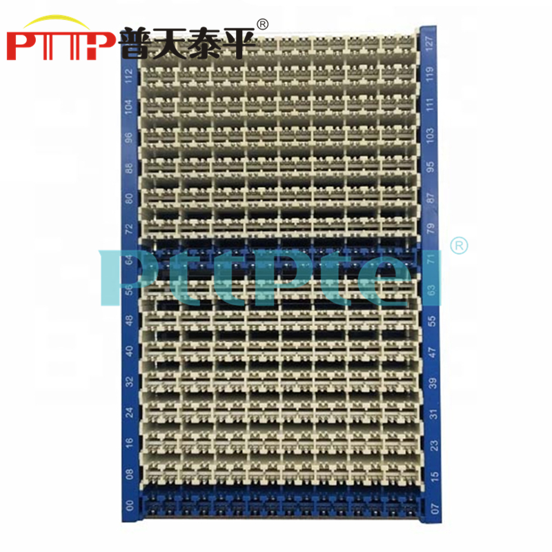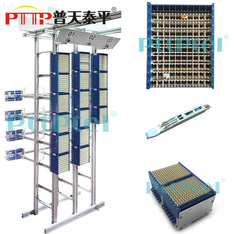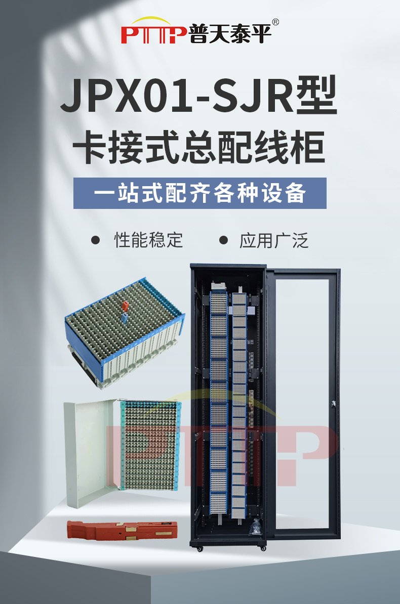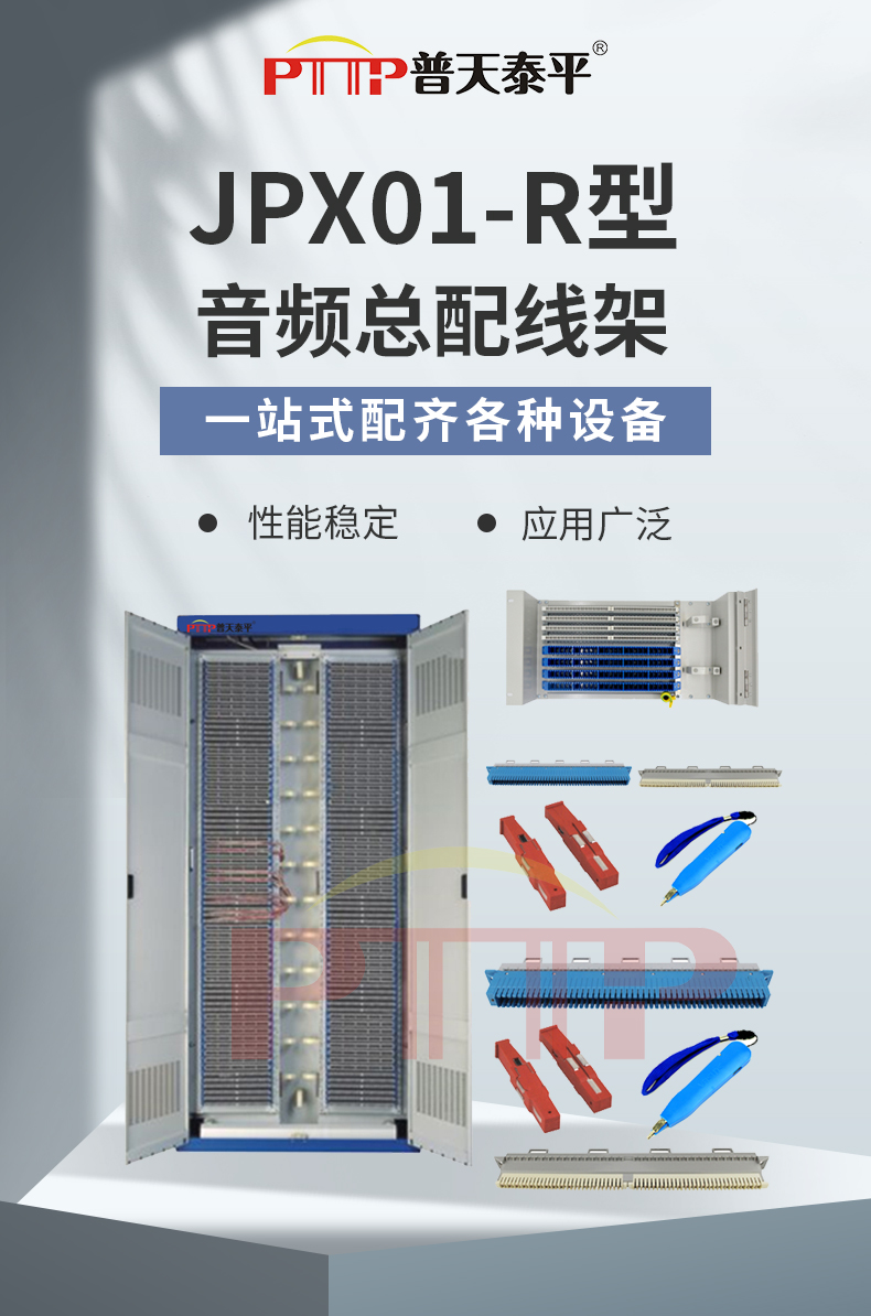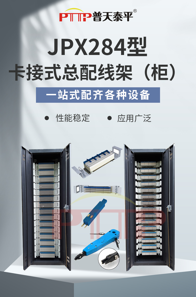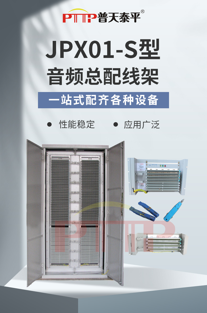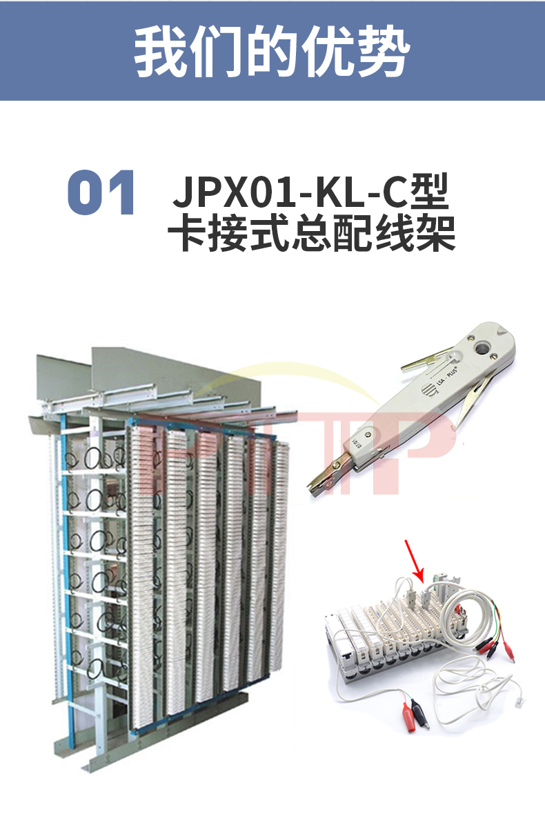 PTTPbbb JPX01 型总配线架从列告警盘、接线排,到底部护栏都提供了易于更换、清洁的列号、块号示名。总配线架由机架、保安接线排、测试接线排、保安器、总告警盘、列告警组件和附件等构成。