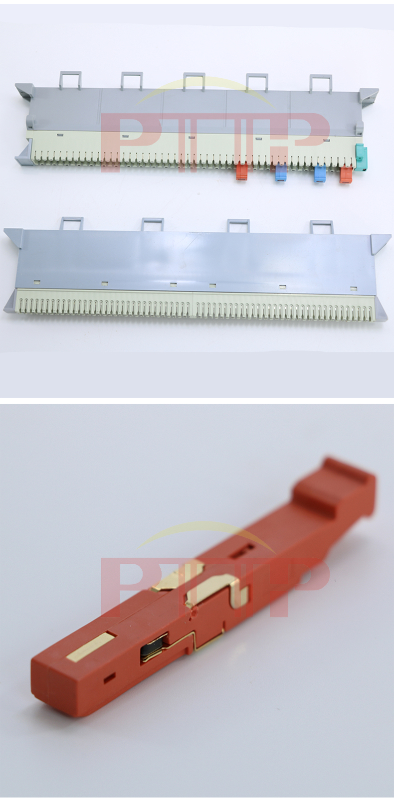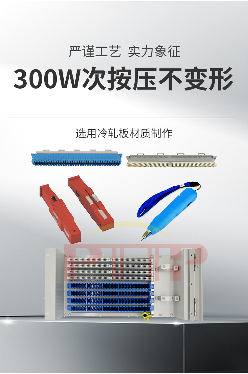 不对称走线槽设计,跳线槽可轻松容纳两对导线,方便改造割接; 双卡口表面镀金接线端子,防护及导电性能优良;