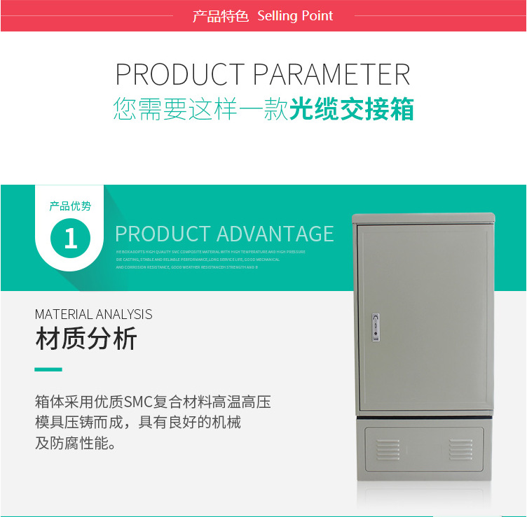 2.1 The box of the product is made of internationally popular SMC glass fiber reinforced unsaturated polyester plastic, which is molded at high temperature and has excellent corrosion resistance and aging resistance. The protection level of the box reaches IP65, which is fully suitable for various harsh outdoor working environments and can withstand sudden changes in climate and harsh working environments. The service life can reach 20 years or more; The box also has good insulation performance, sealing performance, and strong anti-theft performance. The product has a beautiful appearance and a reasonable structure.