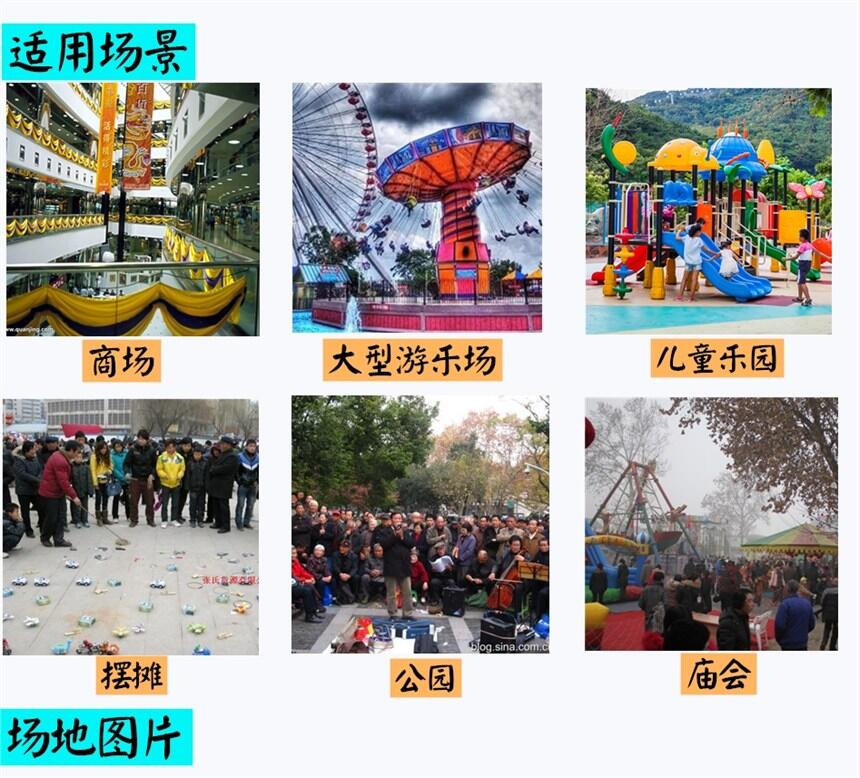 四, 相比十几万的大型游乐设备,我们更便宜,占地面积少,出摊更快捷,运输更方便。