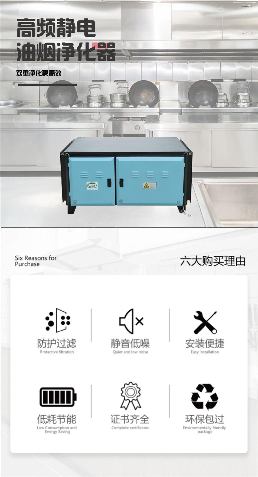 采用高频静电工作原理,整机具有过载保护、漏电保护功能;电源模块具有过载断电及预防起火能;放电模采用模块式结构,方便安装维护。净化效率可达95%以上。