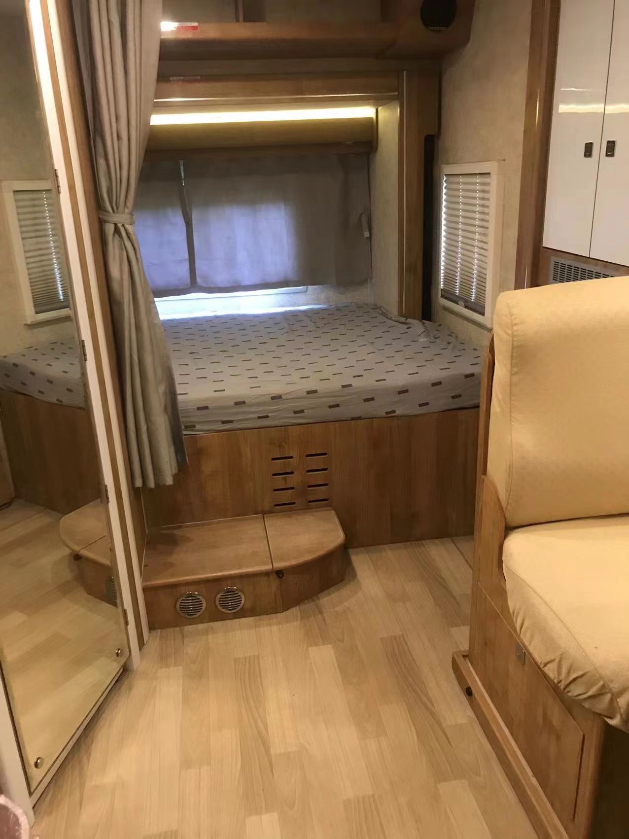 依维柯的驾驶室装饰还算是比较豪华的,基本上每款依维柯都是多功能方向盘、定速巡航、倒车影像加导航9寸触摸屏,而发动机搭载的是F1CE8481K型的,马力170,扭矩370牛米,与发动机匹配的变速箱是8AT自动挡的,这动力让长达5.9米、宽2.4米、高3.1米的车身可以轻松的在路上极速的行驶,这个动力也这辆房车时速达到了120的时速。