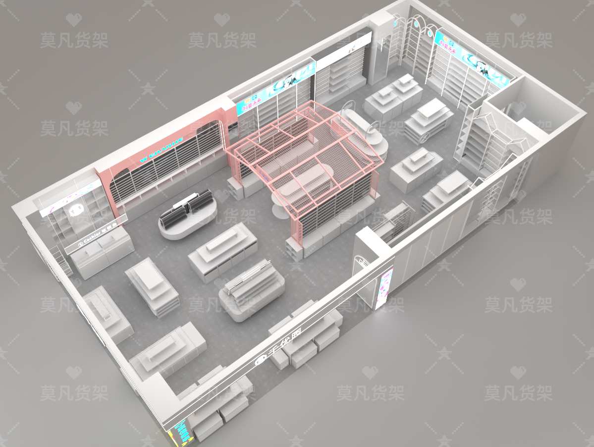品类齐全,一站式采购: 提供包括单面架、双面架、中岛架、收银台、展示柜、挂壁架在内的全系列产品,满足您不同的陈列需求,助您轻松打造层次丰富、动线合理的购物环境。