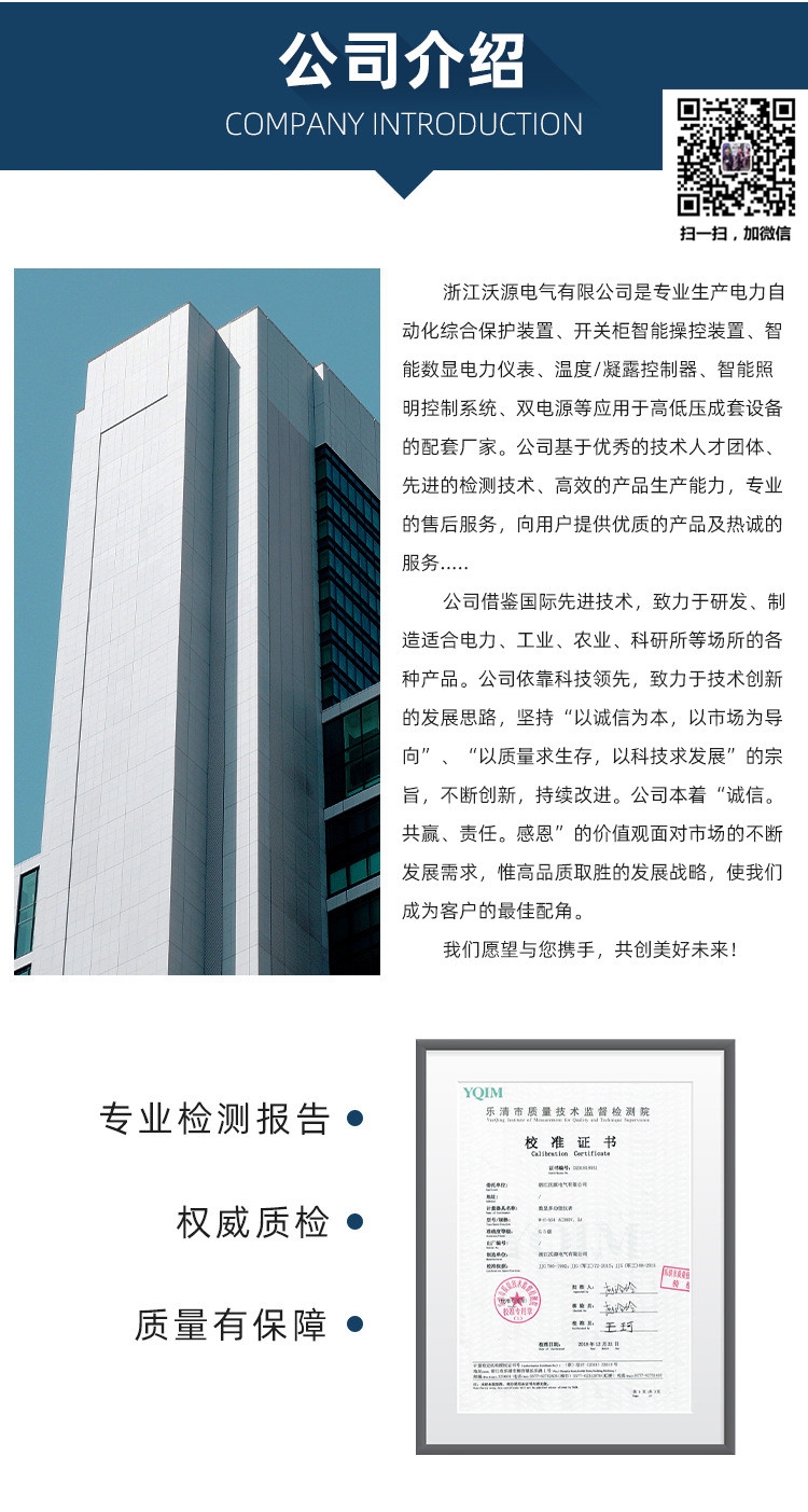 公司借鉴国际先进技术,致力于研发、制造适合电力、工业、农业、科研等场所的各种产品,凝露、温湿度控制器,多功能电力仪表,可编程数显三相电力仪表,可编程数显单相电力仪表,开关柜只能操控装置,开关柜状态显示仪,线路保护装置、站用变(配变)保护装置,进线备自投装置,故障指示器,成套柜体辅助配件,智能照明控制系统,电涌保护器等各种产品。电力仪表凝露温湿度控制器开关柜操控状态等电力系统装置,厂家直销,价格绝对让你满意!