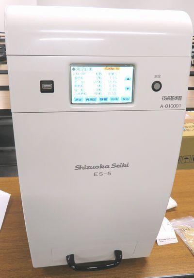 静岡製機?1?1Virgo ES-5型〉最大の特徴は測定時間が非常に短い点。従来器の28秒から大幅に短縮し、約5秒で測定ができる。測定結果は内蔵ディスプレイのほか、プリントアウトも可能。操作は玄米を装置上部から投入し、測定ボタンを押すだけ。パネルを脱着し、シュートを抜き取るだけでメンテナンスが可能で、工具は不要。