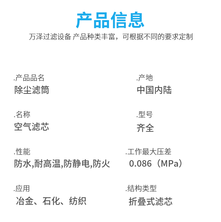 快拆式除尘滤筒万泽210*220MM喷砂过滤芯尺寸可定制WZ