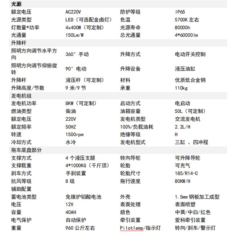 拖车式移动照明平台灯,柴油机照明灯塔系统防汛抢险工程应急灯