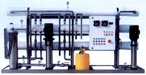 天一净源水处理设备有限公司生产的工业反渗透系统由原水增压泵、多介质过滤器、阻垢剂添加保安过滤器、高压泵、反渗透膜、压力容器、以及相应的仪器、仪表、阀门、机架、管道及管件等组成。