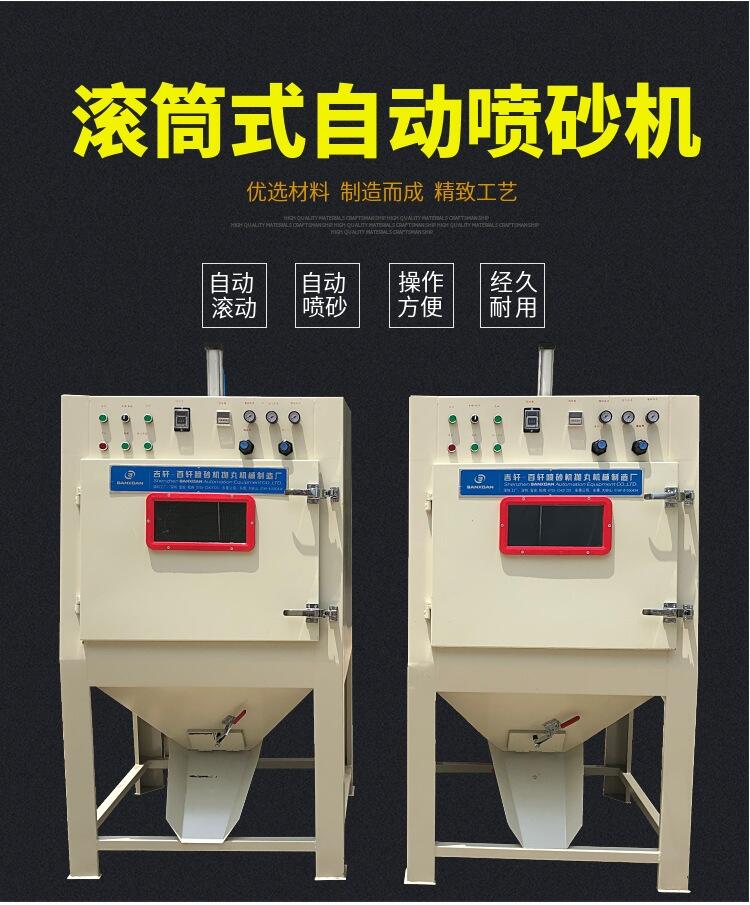 2.要看产品的形状,选择喷砂机的规格,一般一米以下的都有固定的规格,特别大的要订做或选择开放式的。
