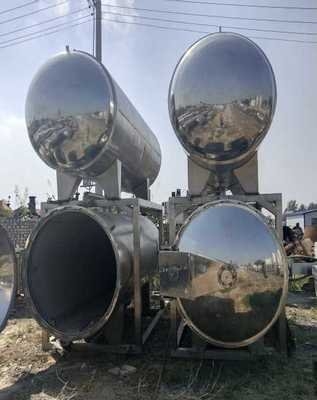 蒸汽加压完全水浸式杀菌锅内所有的容器被完全浸没在水中。水是加热介质,额外的蒸汽是过压源。杀菌锅为卧式。这些杀菌锅有一些特有的测量仪表和操作特性。用泵进行水循环。水通常是通过外部的混合室由蒸汽直接喷入进行加热。蒸汽也是从杀菌锅顶部高出水面处引入进行加压。