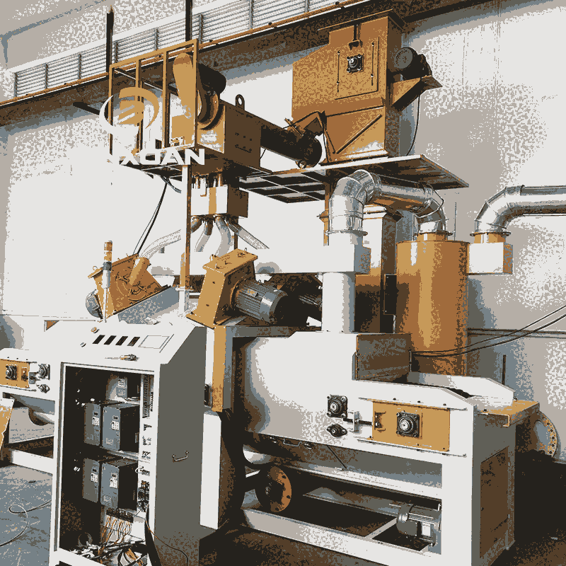 ● 分离装置采用目前最实用的螺旋布料满幕帘流幕式丸渣分离器,分离效率可达 99.5%,在分离器储存仓内部装有料位仪,随时控制所有抛丸器的物料均匀。