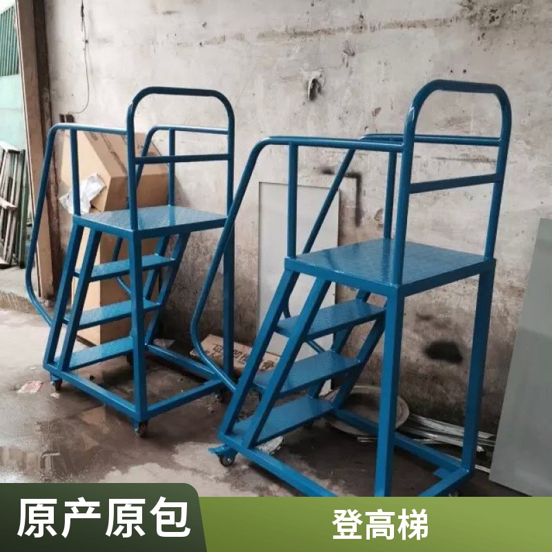 踏步梯是用高强度方管、角铁、钢管做为机架,防滑花纹钢板做为台阶制造而成,两个脚轮带刹车,移动灵活方便.登高梯(车):登高车采用优质钢材制造配以优质脚轮;既可做为物料搬运与周转的承载工具,又可以作为登高取货的辅助作业工具,?具有安全可靠、结构简单、方便快捷的特点;特别适合于工厂、仓库、图书、标准件等环境下轻小型物料的人工拣货作业。登高梯厂家批发 质量保证!!