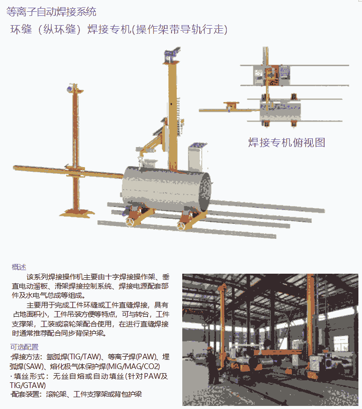 环缝(纵环缝)焊接专机(操作架带导轨行走)