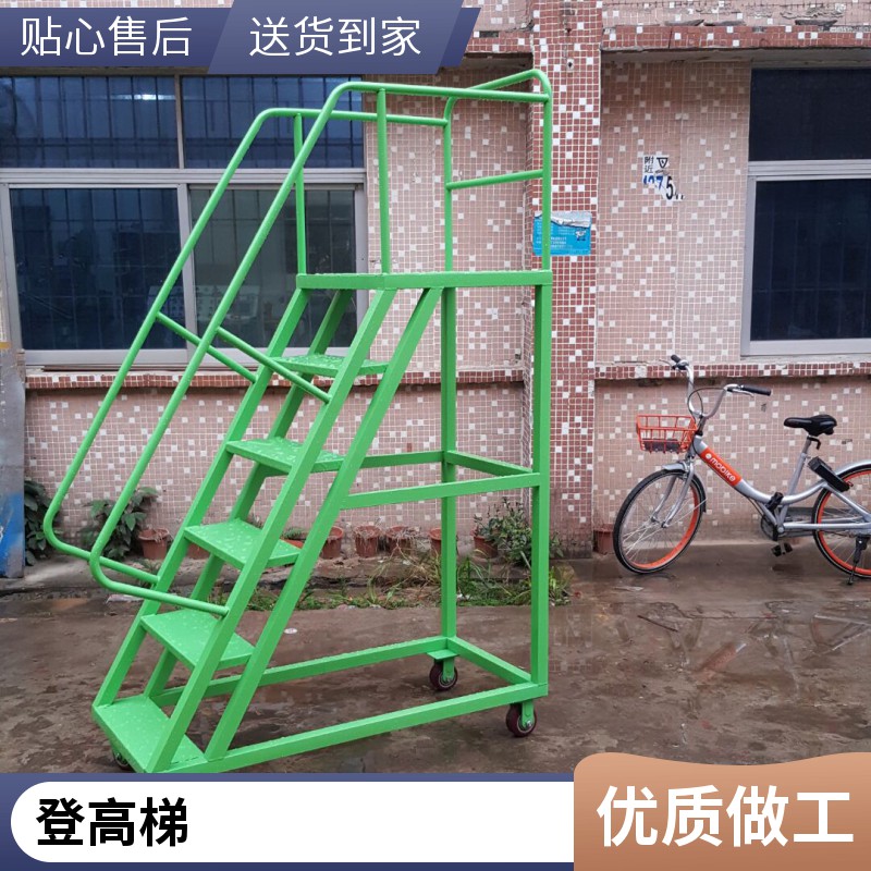 平台梯采用钢材制造配以脚轮可以灵活移动。表面采用环氧树脂静电喷塑处理,具有极强防腐、防锈效果。适用范围:广泛适用于图书馆、家庭、商场、超市、企业仓库和事业单位、汽车零配件仓库、制药、电子和服饰企业,是当前物流管理的一个理想选择,是当前传统木制、钢管焊接货架的理想升级换代产品. 根据不同的使用场所及要求,登高梯会有不同的设计及尺寸, 多种款式可以根据设想而制造,满足特定场的特定要求,移动平台梯的尺寸根据通道及安全因素而定, 通过脚轮的移动及脚刹的稳固安全保障,确保了登高样的使用灵活及安全性。