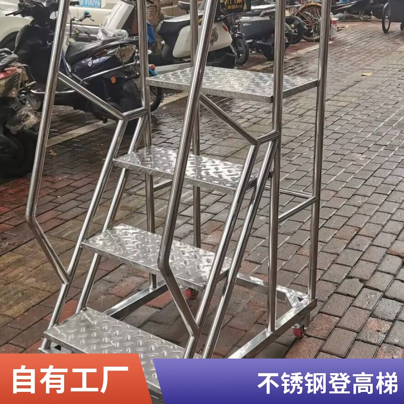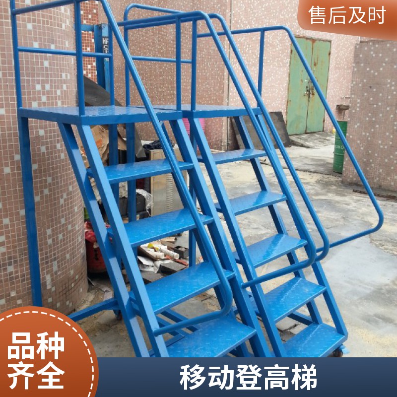 加料梯是用高强度方管、角铁、钢管做为机架,防滑花纹钢板做为台阶制造而成,两个脚轮带刹车,移动灵活方便.登高梯(车):登高车采用优质钢材制造配以优质脚轮;既可做为物料搬运与周转的承载工具,又可以作为登高取货的辅助作业工具, 具有安全可靠、结构简单、方便快捷的特点;特别适合于工厂、仓库、图书、标准件等环境下轻小型物料的人工拣货作业。