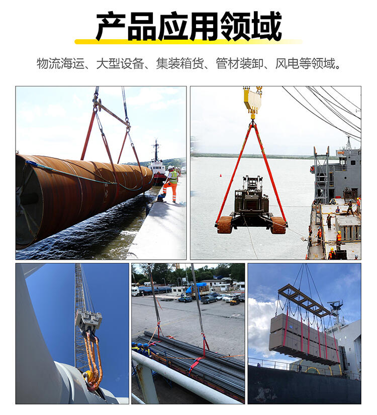 ★扁平吊装带的载荷范围为:0-50吨,长度范围为1-100米。