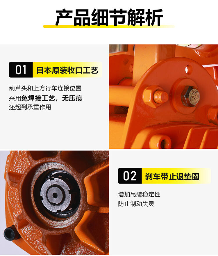 3.极 限开关:重物吊上吊下都有极 限开关装置,使电机自动停止,以避免链条超出;