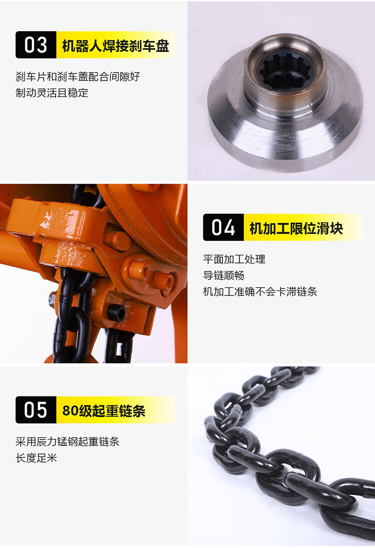 7.链条:采用进口FEC80强热处理合金钢链条。