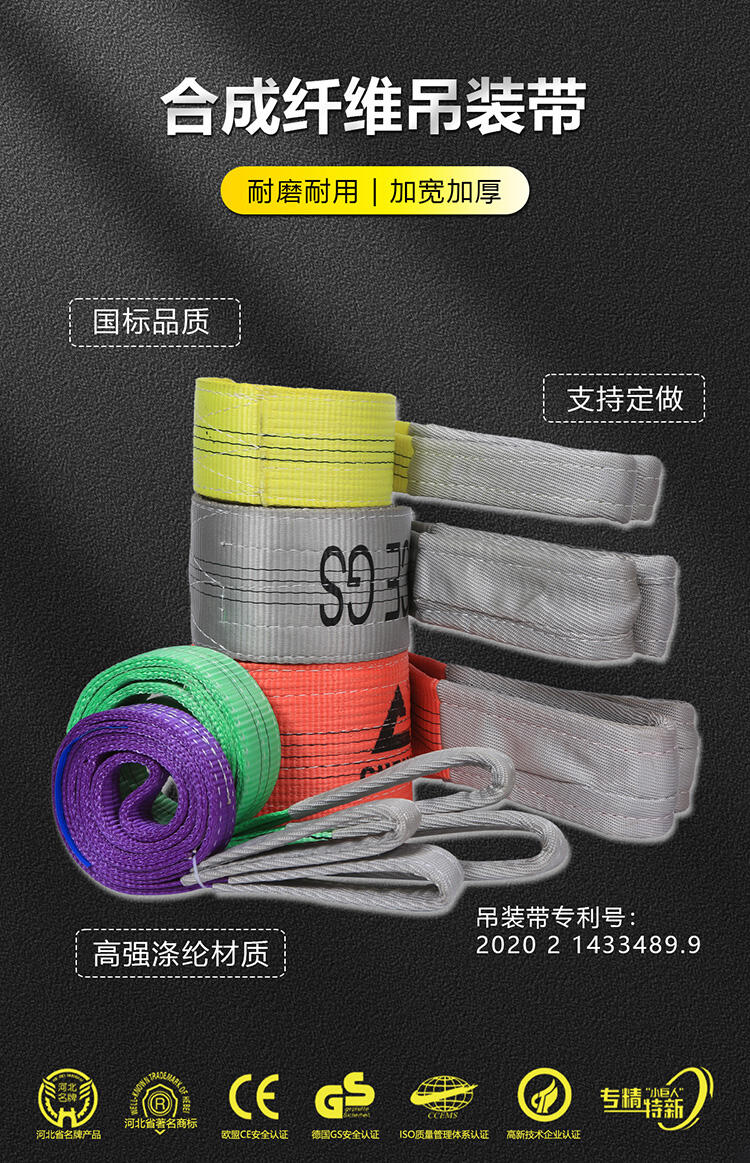 吊装外表面光滑及精细的物体时,不易损坏被吊物,承载面宽,可以减小表面负荷的压力,轻便柔软,在狭小的空间也易于使用。